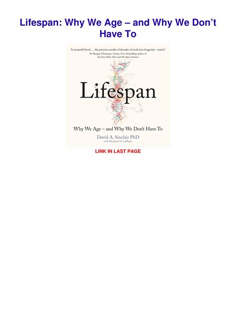 Download Ebook Lifespan: Why We Age and Why We Don't Have To Download Links PDF